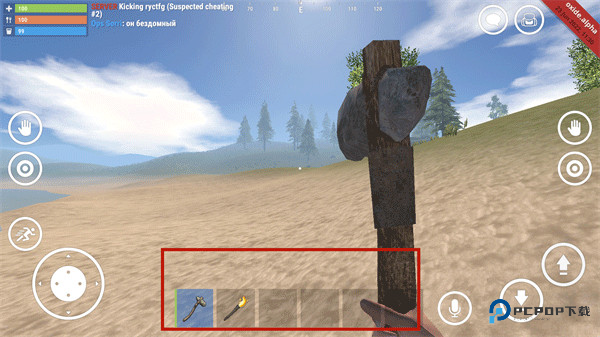 5、屏幕下栏为当前装备的物品,可以通过点击进行切换。