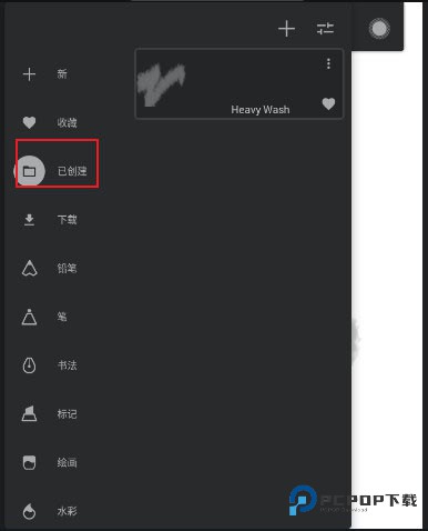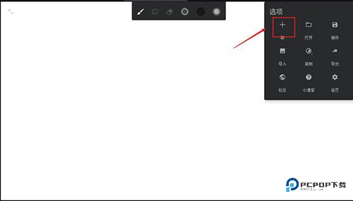 1、首先再本站下载打开Painter绘画软件,点击右上角的三点标识打开选项设置,点击"+"进行创建;