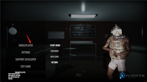 1、进入人渣scum正版,等待几秒进行游戏加载,然后正式进入游戏首页,点击单人游戏,里面提供了游戏演示、继续和新游戏,我们点击开始演示;