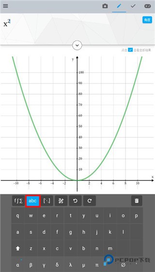 5、当打出x的平方时,还可以绘制出x二次方的函数图