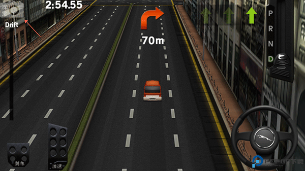 3、通过旋转右侧的方向盘来调整车辆行驶方向,左侧的按钮则用于刹车和加速控制。