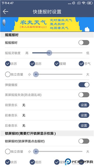 1、软件支持桌面小工具、锁屏、摇一摇和按键快捷报时。