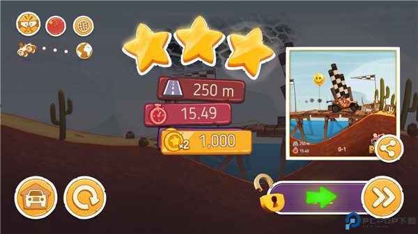 4、玩家可以通过收集金币或完成任务来解锁车辆的升级部件,比如发动机、轮胎、悬挂等。