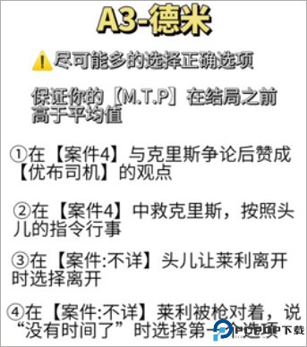 德米线进入前提:所有选项选高MTP的那条,在所有选项中支持德米,在遇见头儿后选择到后方支援而不是留在头儿身边。在警察局不要帮克里斯或在克里斯线中跳转到德米线(选择两次和德米有关的选项),