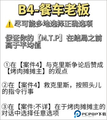 摊主线进入前提:在所有谈话中选择餐车老板,尤其在老板最后一次与德米争吵并提出一个消极的观念时选择支持老板,