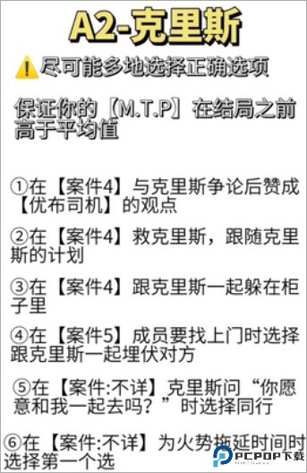 多选择克里斯的选项,最后在警局和克里斯躲着并躲在在一个柜子里保证两人都活着。同时,如果要你在摊主和德米之间选择,选德米那条比较积极的想法。注意,在克里斯线最终事件里反复提及德米或头儿可以跳转到德米线或头儿线。如果不想跳转,选择和克里斯相关的选项,