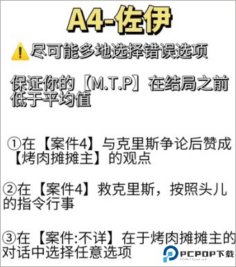 AB分支:在相同条件下,最后被SMAKS老大拿指着的时候选择第一条(较为积极的那条)进入A结局,选择第二条(较为消极的那条)进入B结局(同摊主线建议sl)。