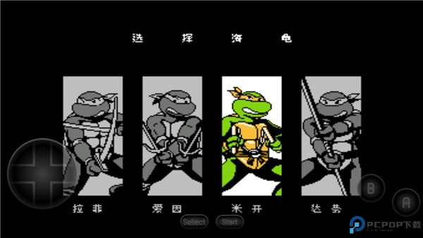 【角色选择系统】提供四位忍者龟角色,每位具备不同攻击方式与武器。