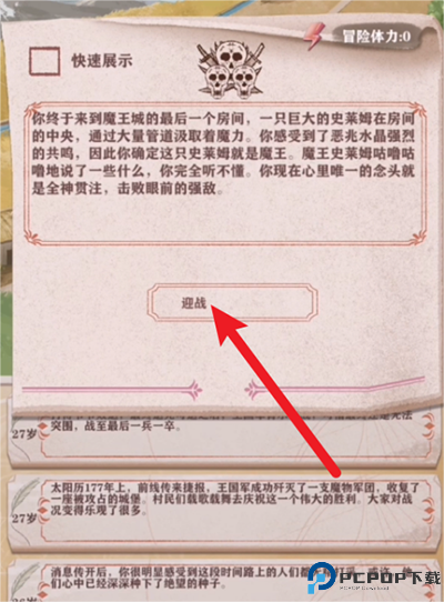2、然后选择迎战,和魔王展开对决。