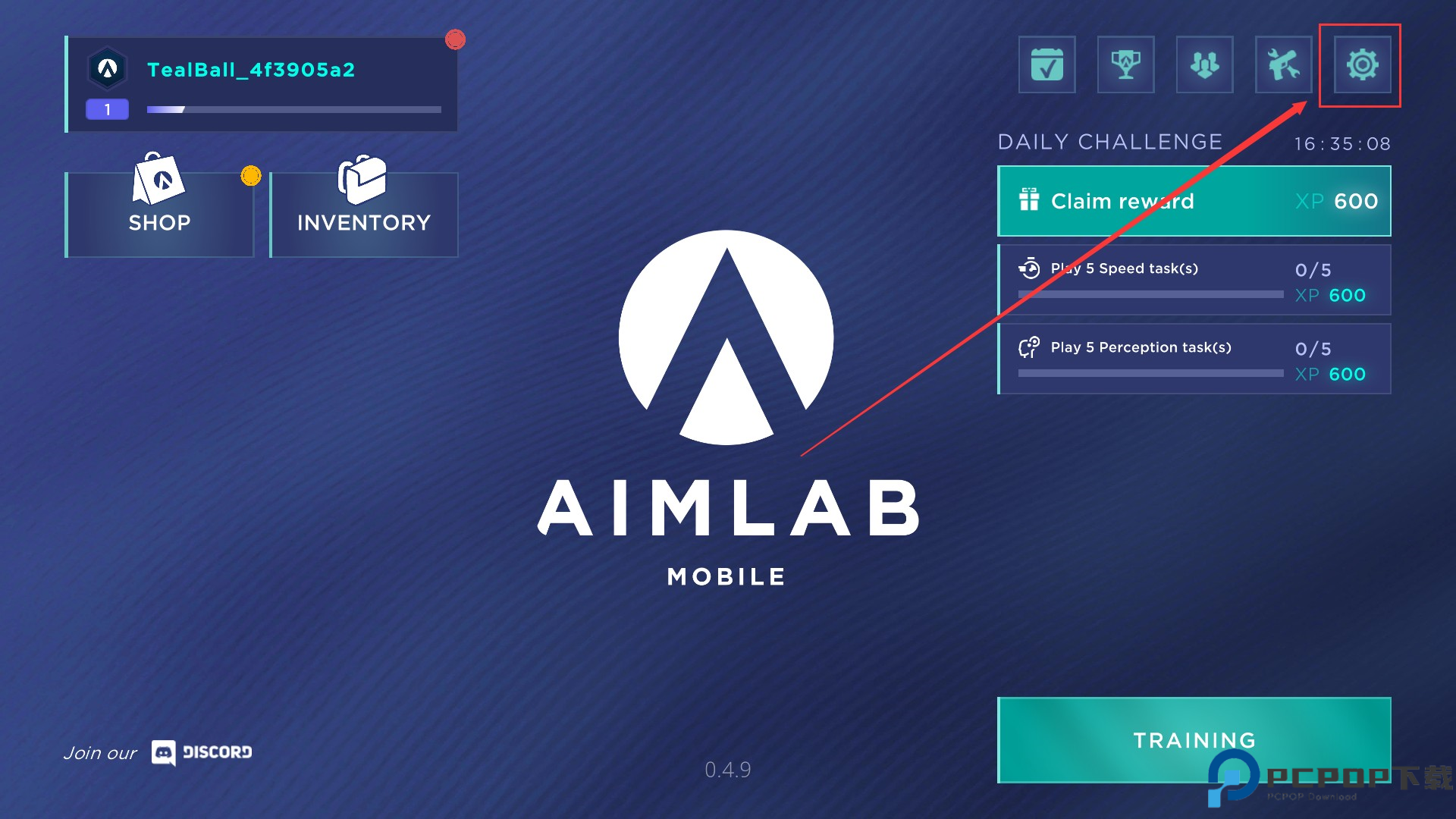 1、打开瞄准实验室手机版,点击右上角设置按钮进入设置。