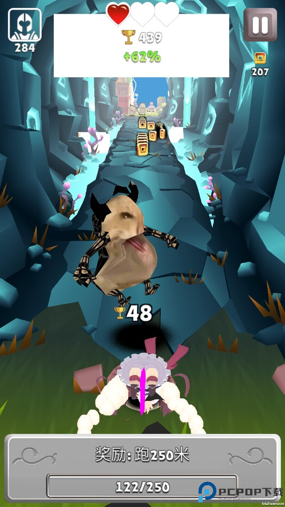2、我们还可以消耗收集到的金币来强化角色的能力,让她能够跑的更快更远,获得更高的分数。