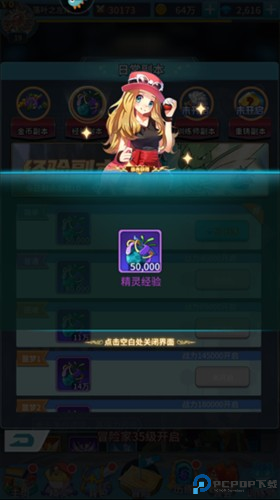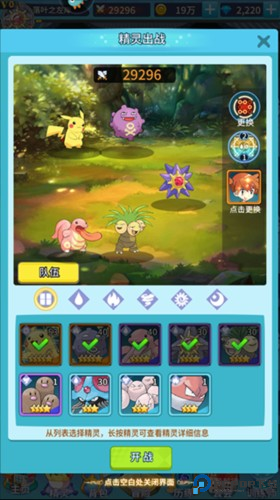 1、打开游戏开启冒险之旅,而且开局就能让你梦回精灵宝可梦第,在这里你将化身为姗姗来迟的训练家,同时开局就能召唤出属于自己的宝可梦,与它一起开启接下来的冒险之旅。在得到宝可梦之后就能开始冒险,首先我们可以带着宝可梦参与冒险模式挑战BOSS,也可以挂机升级。而且在第一次挑战BOSS的时候,除了我们开局抽到的毒刺水母,还能额外获得宝石海星和我们一起并肩作战