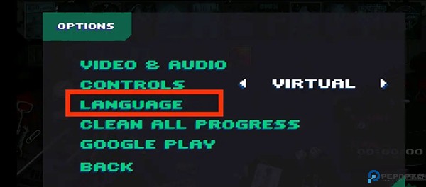 1、刚进去时候,是英文的,别担心,先点杀通过训练关卡,正式进入第一关后,点击右上角菜单。