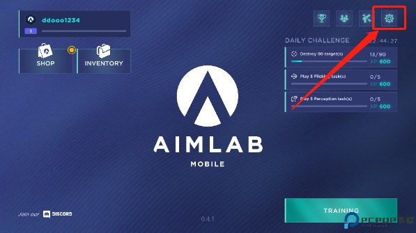 1、首先打开瞄准实验室,进入后点击右上角的设置按钮;