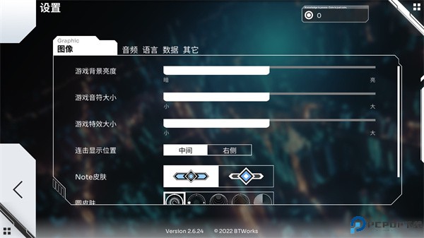 4、玩家在一些过程中可以设置圆皮肤、note皮肤、特效的大小等。