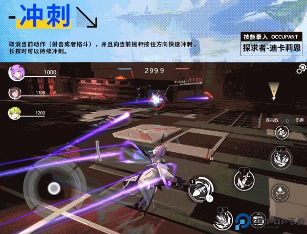 “冲刺分成点按和长按两种,都会消耗气槽,可以取消普通射击,三连射的射击硬直,以及规避对方的子弹。”