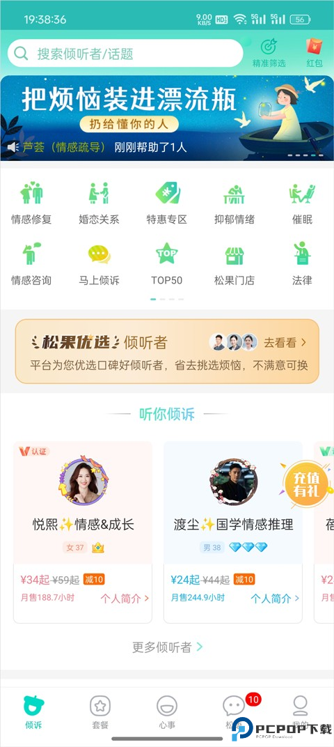松果倾诉是一款匿名的情感交流软件,软件提供匿名说心事功能,软件无需注册,有10w+咨询师,帮助你理清思路,1对1匿名倾诉,7*24小时真人在线,随时想说就说,支持多种交流方式,比如文字、图片、语音、实时通话等,拥有更加快捷的匹配系统,用户可以参与各种群组,让用户放下情绪包袱,让你随时想说就说,有超过10万精英倾听者给你解惑。