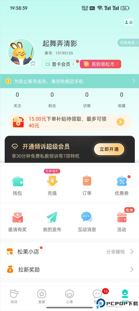 1、打开松果倾诉App,在首页中找到【我的】,点击打开。