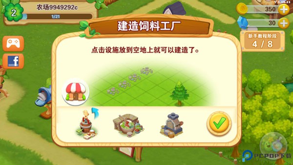 3、通过升级建造农场区域,如牛棚、羊圈、鱼塘和花卉区。