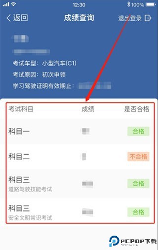 5、之后,点击登录,登录之后,会跳转到成绩页面,显示以往考试记录的成绩。