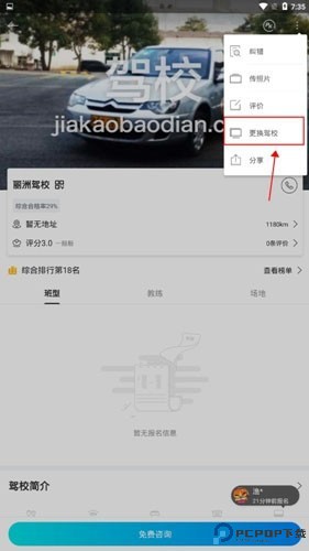 4、点击更换驾校。