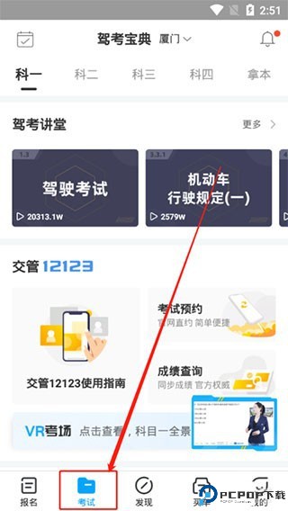 2、把底部导航栏切换到“考试”的页面中,然后下拉页面。