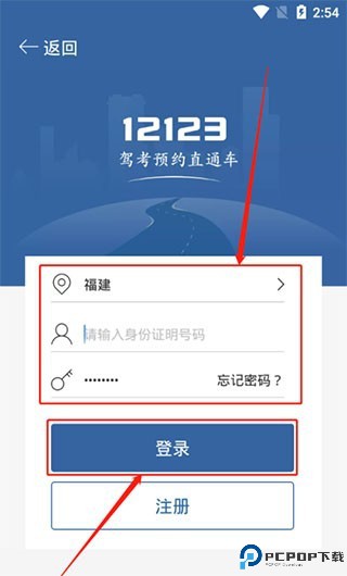 4、这边需要登录一下,选择自己驾考报名的省份,填写要查询的人身份证号和交管12123的密码。