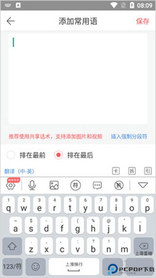 2、进入分类后,你就可以添加你的常用语了。你的常用语可以直接导出,也可以直接从共享话术中导入进来。
