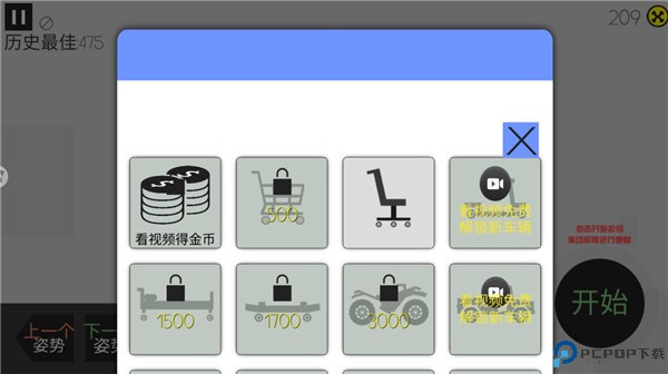 3、接下来选择汽车,金币越贵的汽车性能就更好,可以对火柴人造成更多的伤害