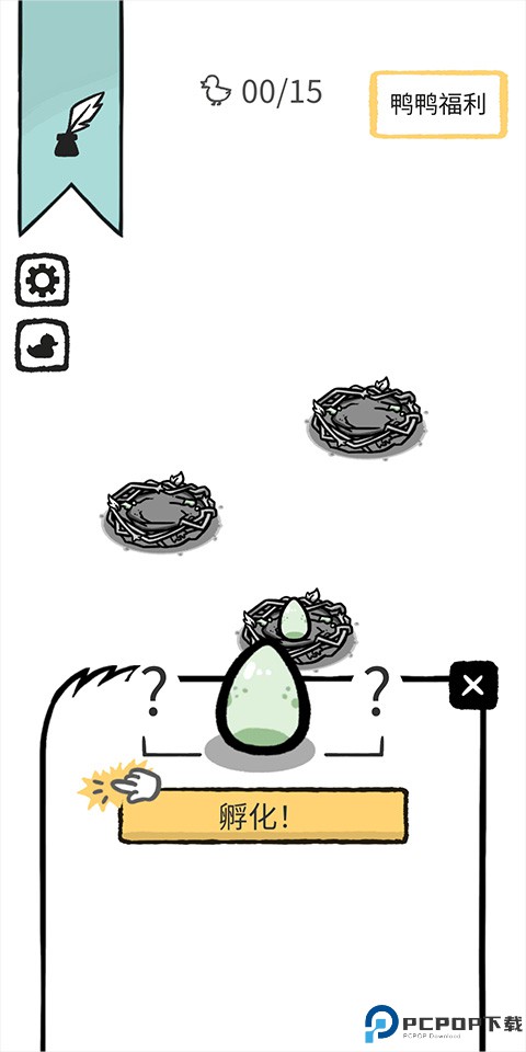 玩家只需在场景内稍等片刻,鸭子就会在窝内孵化出鸭蛋,通过点击鸭蛋孵化出更多变异种类的奇怪鸭子。