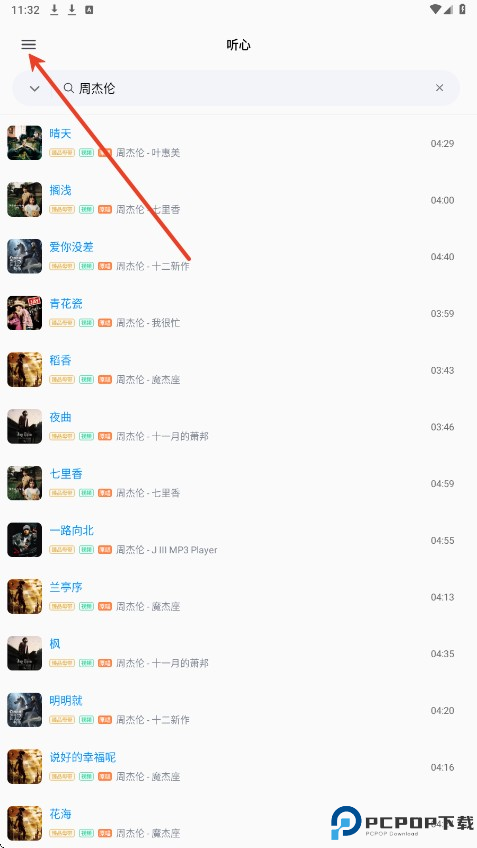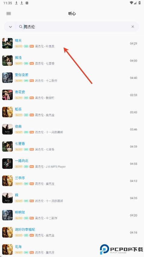 2、点击想听的歌名。