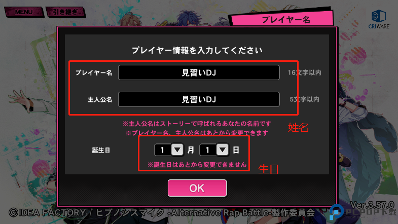 2、然后输入游戏名字以及生日,注意这里点击【ok】后还需要再确认一遍;