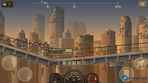 1、巧妙的融合不同的元素,驾驶车辆在大荒原上闯关,极速的前进避开僵尸的袭击。