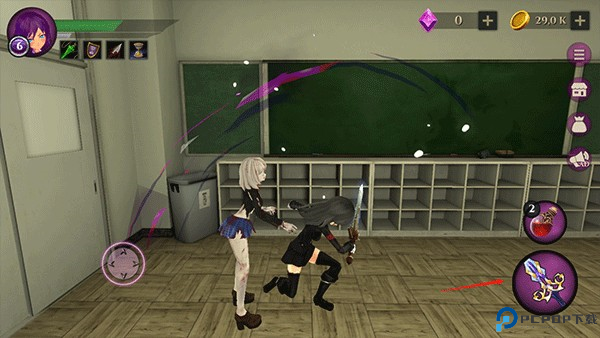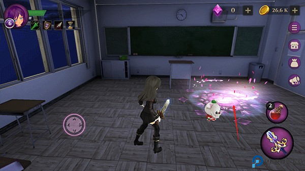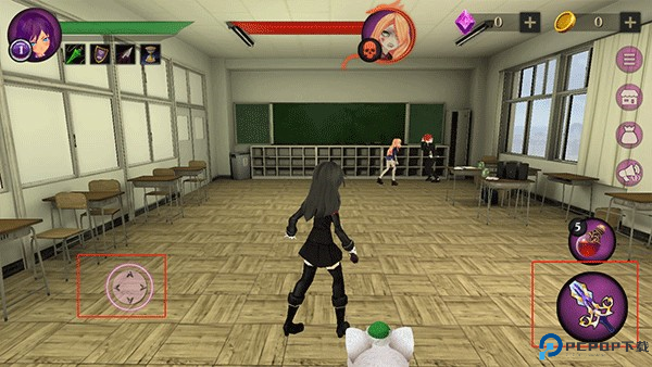 2、在动漫高中僵尸模拟器游戏中你将通过左边遥感操控角色的移动,右边为攻击按键