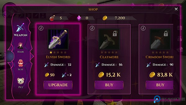5、游戏中还提供了商店系统,当玩家金币足够时可以在商店中购买新的武器、服装、发型和宠物