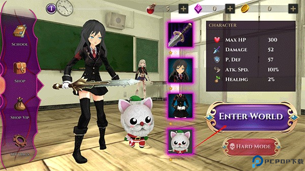 1、打开动漫高中僵尸模拟器手机版游戏后,点击Enter World开始游戏
