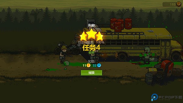 2、第二大关,难度上来了,跑尸增多了,拿三星有困难,需要记住僵尸的路线,掌握对投弹兵的使用方法,实在过不去就卖车(损失巴士血量,让卡尔杀僵尸)