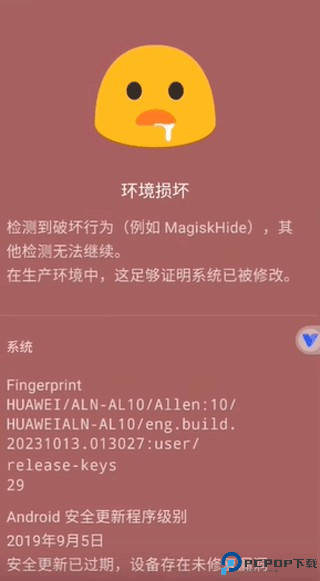 4、然后启动momo环境检测软件后提示环境有问题,检测出面具的隐藏root模块