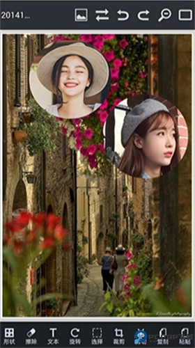 1、双图编辑:可以同时打开两张图片,选择区域进行粘贴,制作拼贴图效果。