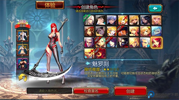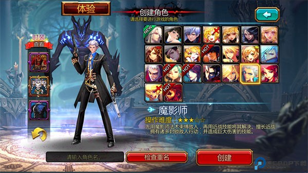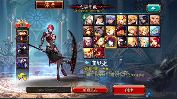 5、玩家可以选自右边自己的喜欢的角色职业,左边还有不同的时装可以进行更换,最重要的是玩家还需要给自己的角色起一个名字哦。