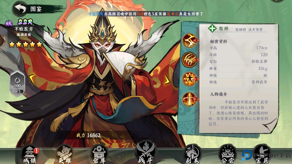 1、百变搭配,策略无限,妖、人、兽、仙、魔五大种族各具特色,合理组合发挥最大优势。