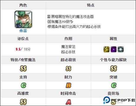弗雷是能使用雷和黑暗属性魔法的攻击者。专用魔法“重力之力”和“最终切利欧”因为Hit数多,能打出非常高的伤害。