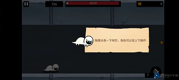 2、进入到游戏之中之后,随便点击一个地方就可以使得角色往上或者往下操作了;