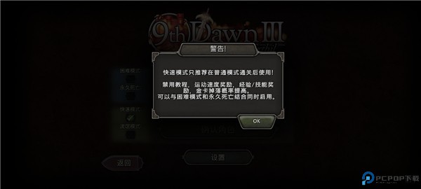 快速模式只推荐在普通模式通关后使用!禁用教程,运动速度奖励,经验/技能奖励,金卡掉落概率提高。可以与困难模式和永久死亡结合同时后用。