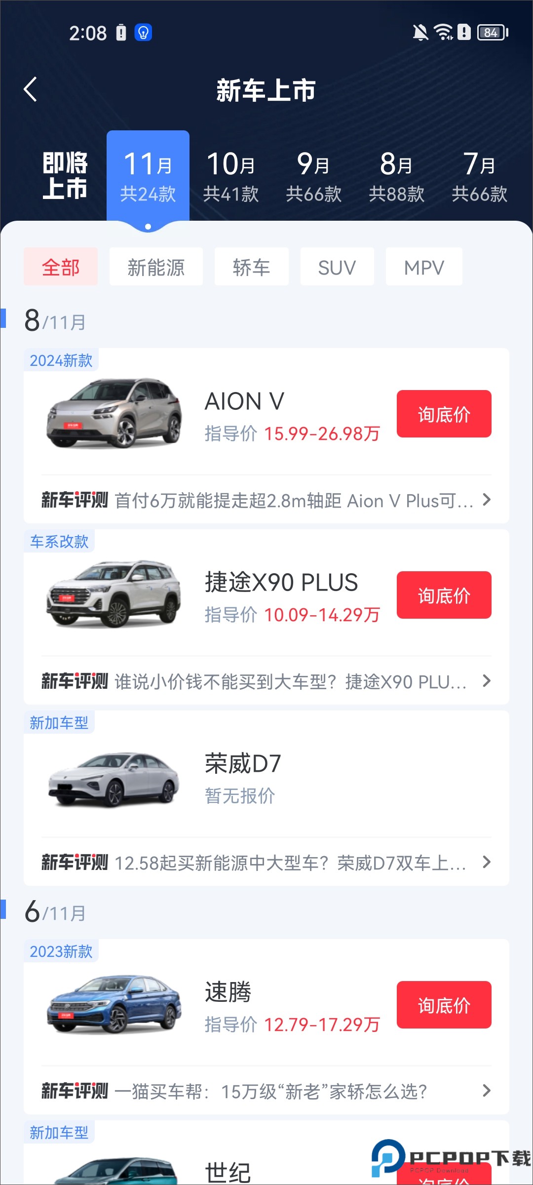 3、也可以从新车上市这一块来看,11月上新一共有24款,点击进去会有这款车的详细信息