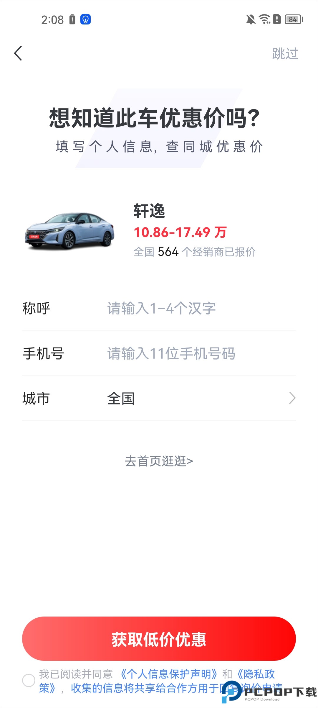 4、如果你想知道的话可以填写你的信息,不想知道就直接去首页逛逛,这样有助于你选择爱车的不摇摆定性选择