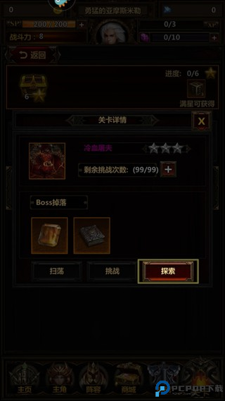 5、在接近Boss战前,可返回主页为角色更换装备并进行升级。