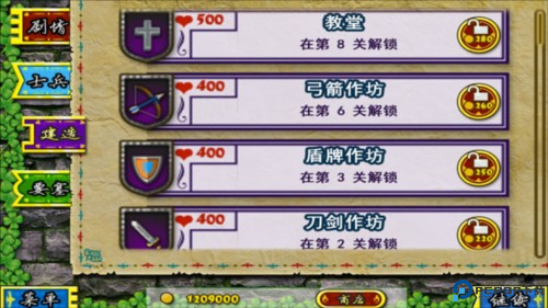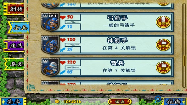 3、敌人到来前我们可以购买士兵、建筑、要塞为战斗到来进行准备,特别提醒大家战斗中我们还是可以点击士兵进行移动,根据敌军的路线将我们的士兵移动到战斗区域。
