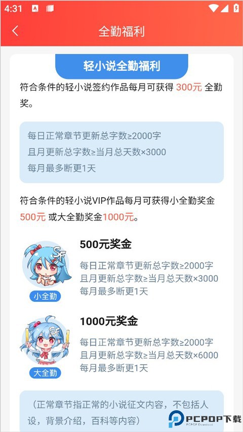 一、全勤福利「轻小说全勤福利」符合条件的轻小说签约作品每月可获得300元全勤奖。