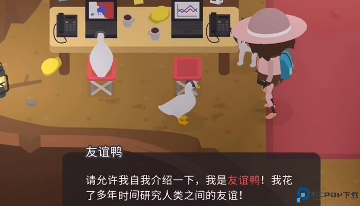 2、接着和握手鸭学习如何握手然后去城镇找到三十个头上有黄色感叹号的人握手。